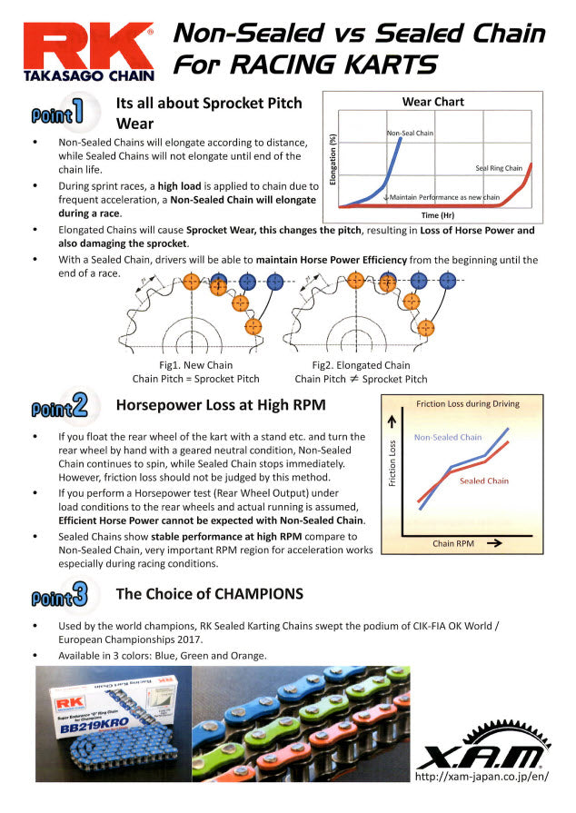 DirtyBike's 219 XXX primary chain drive system slightly reduces the gear ratio to provide better acceleration and easier wheelies. Hardened, light weight steel sprockets and RK's sealed O-ring chain provide seamless power transfer and a reliable, long lasting drive system.